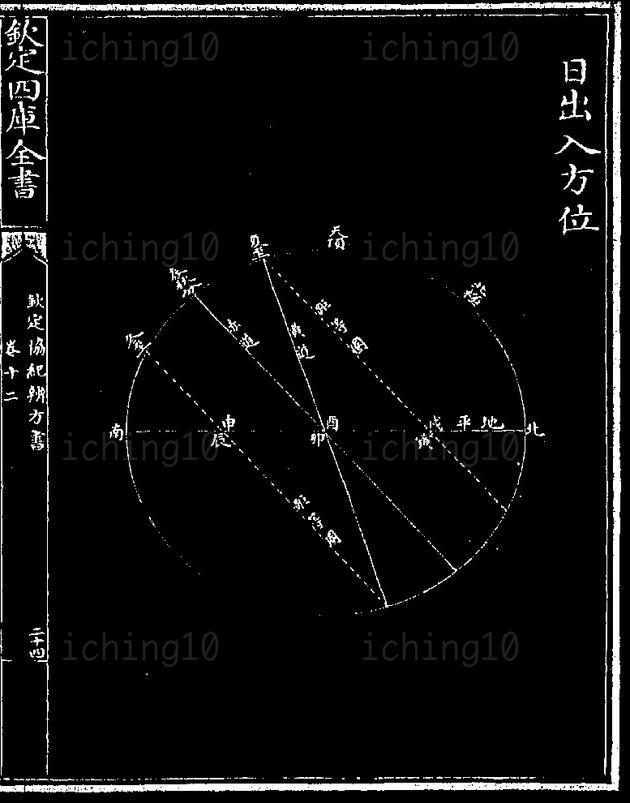 | 立春立冬 | 日出乙方正東偏南二十一度三十三分 | 日入庚方正西偏南二十一度三十三分 |