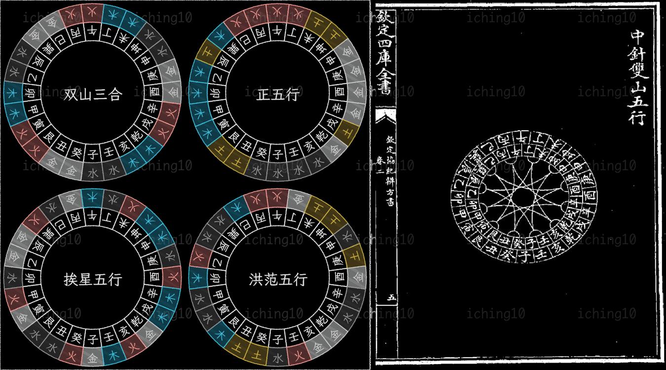 圖外層所列為正針乃二十四山之正位内層所列為中針其子位在正針壬子二位之間比正針先半位其雙取者為雙山其取三合者為雙山五行地理家格龍用之蓋龍為來脈故用先至者承之乃無失也