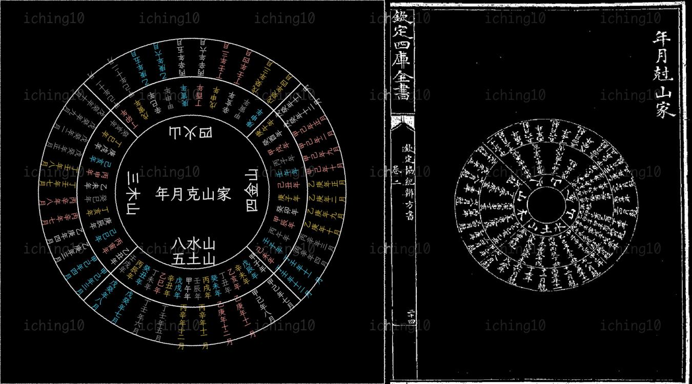 通書大全曰本年二十四山墓龍變運某山運為年月納音所尅即為年月尅某山惟新建宅舍新立墳塋論之其拆修豎造不動地基及舊塋附葬者皆不論如甲子年納音屬金本年水土山墓運戊辰屬木受年納音之尅即為本年尅甲寅辰巽戌坎辛申八水山丑癸坤庚未五土山也甲子年丙寅丁卯甲戌乙亥月納音屬火本年金山墓運乙丑屬金受月納音之尅即為正二九十月尅乾亥兌丁四金山也戊辰己巳月納音屬木本年木山墓運辛未屬土受月納音之尅即為三四月尅震艮巳三木山也庚午辛未月納音屬土本年二十四山無水運即其月無尅也壬申癸酉月納音屬金與本年納音同故亦尅水土山也丙子丁丑月納音屬水本年火山墓運甲戌屬火受月納音之尅即為十一十二月尅離壬丙乙四火山也又如壬申年納音屬金本年二十四山無木運惟冬至後金山墓運癸丑屬木受年納音之尅即為本年二十四山並無尅冬至後尅乾亥兌丁四金山也日時尅山家俱倣此凡自年月起山家之法用本年五子元遁歷數丑辰未戌四墓納音為年月納音所尅者其墓為某山之墓即為年月尅某山蓋墓龍變運從山起而忌年月此從年月起而尅山家參互相推其理一也