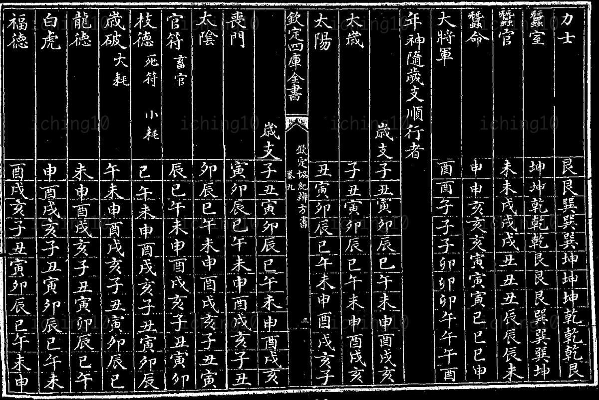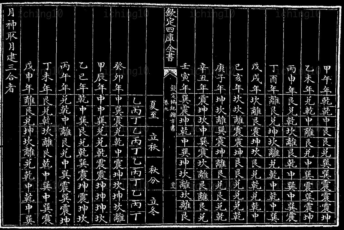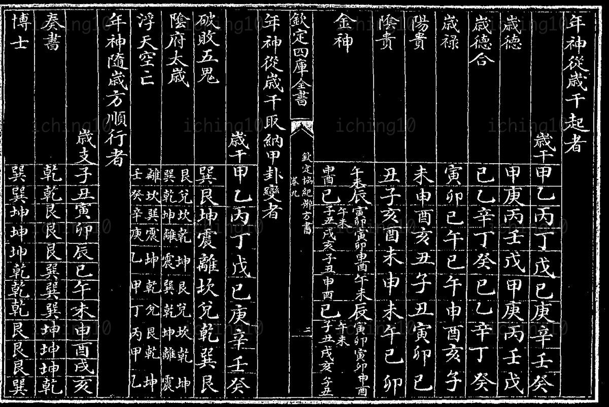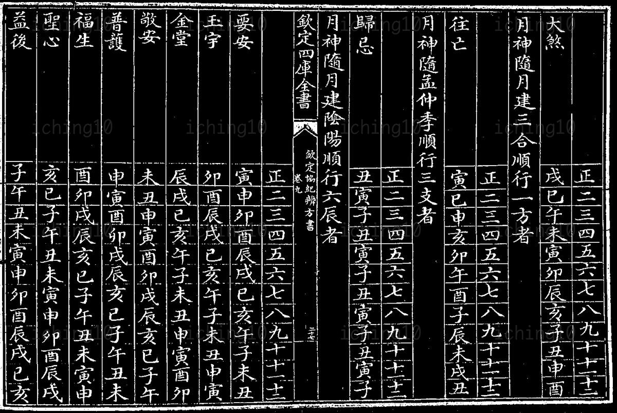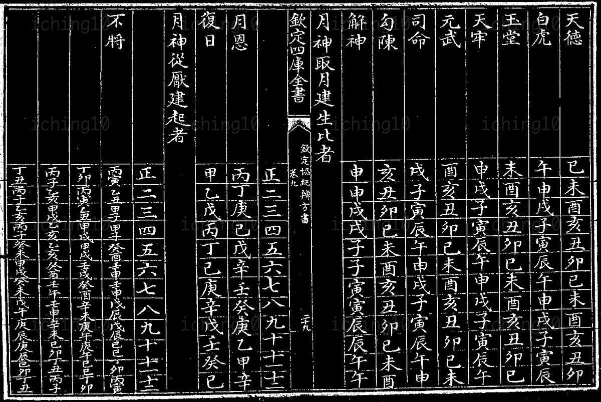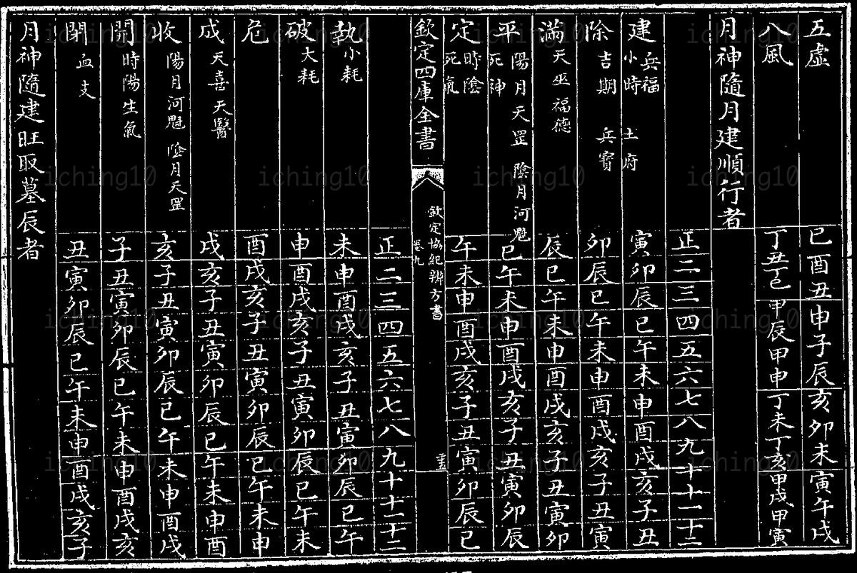 神煞之所由起義例備矣然各為一篇不能一覽而盡其條理且年神方位通書時憲書取用各有不同而月家吉凶神又合建除叢辰諸家以輕重為次第則義例猶未盡焉今將時憲書及月表所用吉凶神另編立成入萬年書外而合通書萬年書歲月日時吉凶神煞彚列成表各分起例以類相從庶其例益明而其義亦從可知也作立成