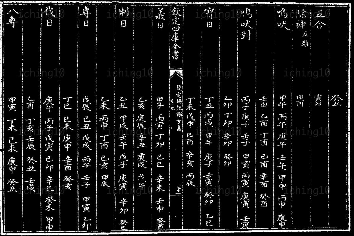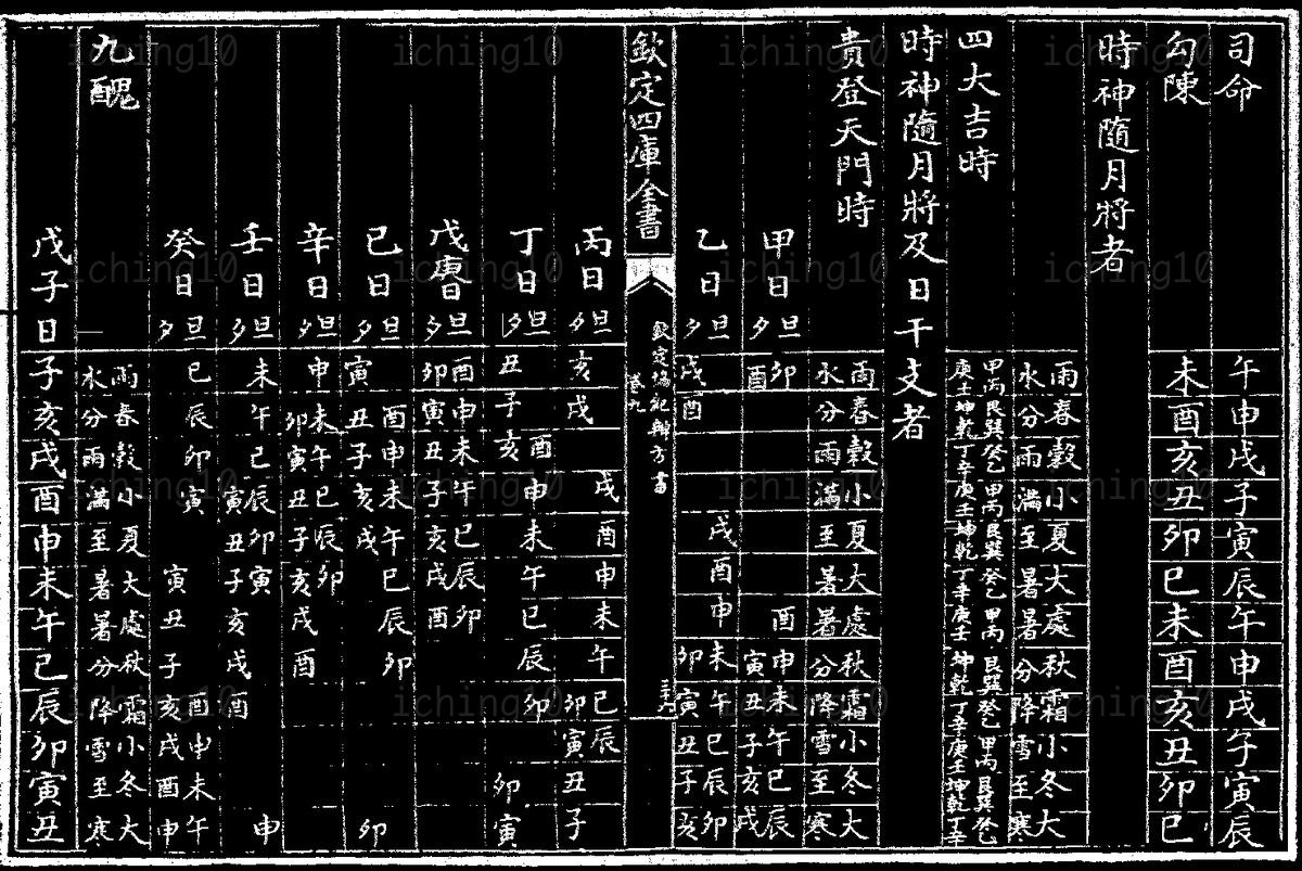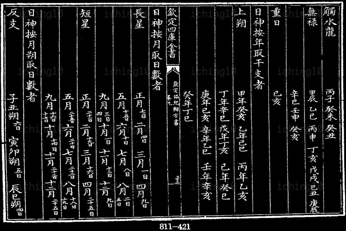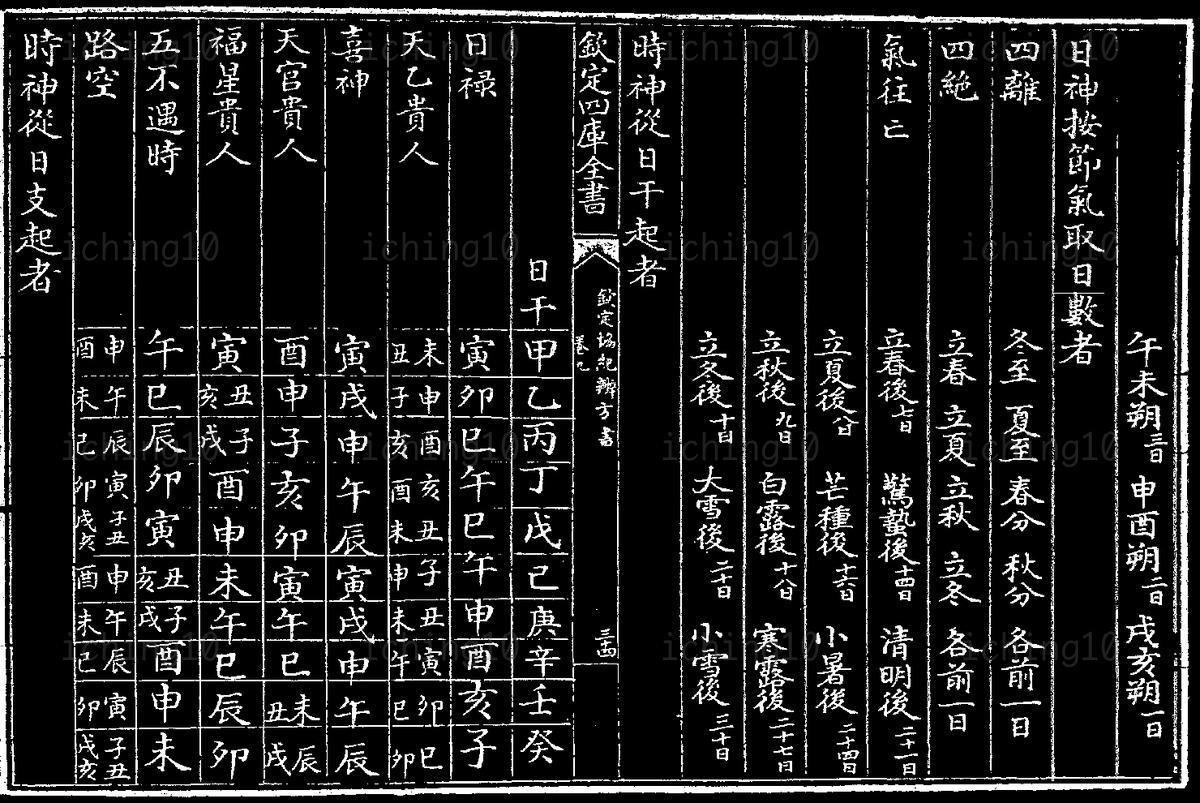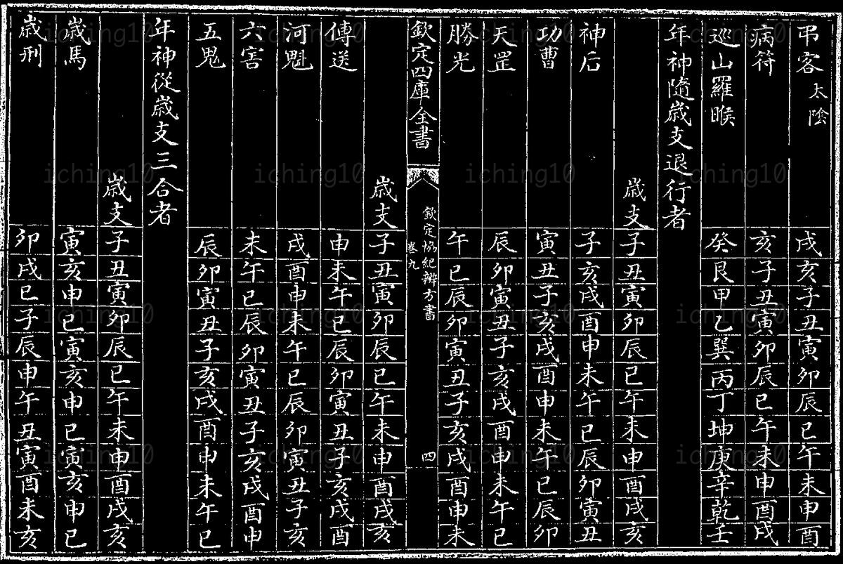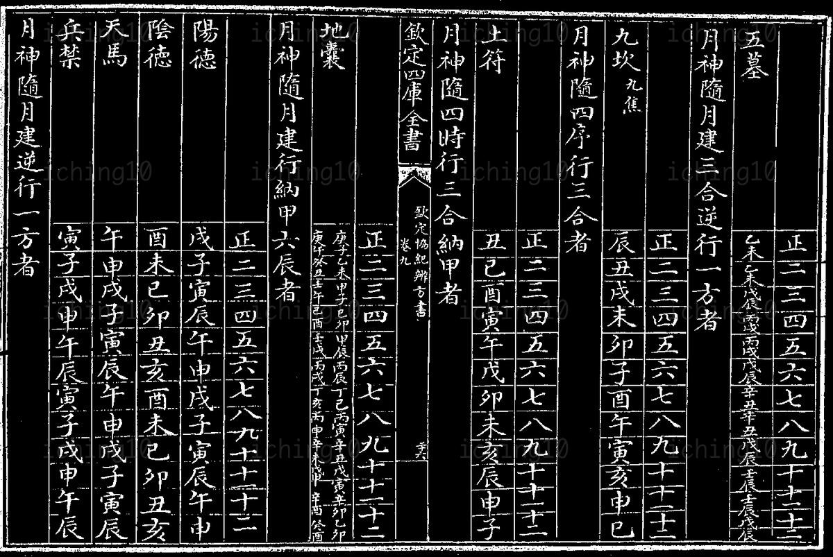 神煞之所由起義例備矣然各為一篇不能一覽而盡其條理且年神方位通書時憲書取用各有不同而月家吉凶神又合建除叢辰諸家以輕重為次第則義例猶未盡焉今將時憲書及月表所用吉凶神另編立成入萬年書外而合通書萬年書歲月日時吉凶神煞彚列成表各分起例以類相從庶其例益明而其義亦從可知也作立成